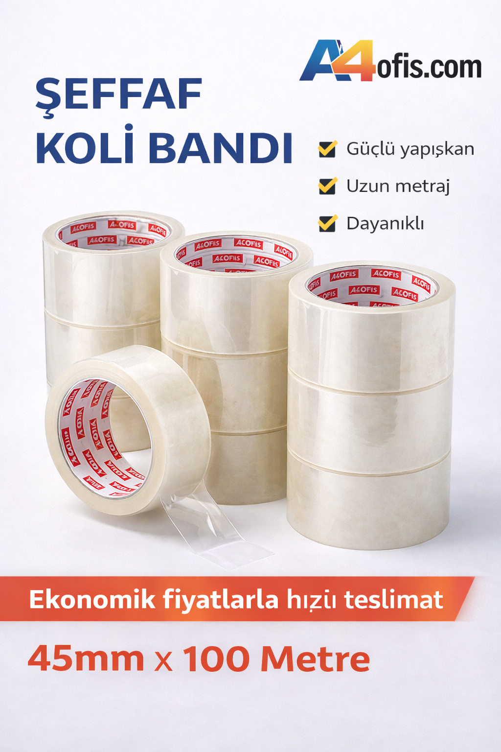 45 mm genişliğe ve 100 metre uzunluğa sahip şeffaf koli bandı, hem bireysel hem de kurumsal kullanımlar için ideal bir çözümdür.